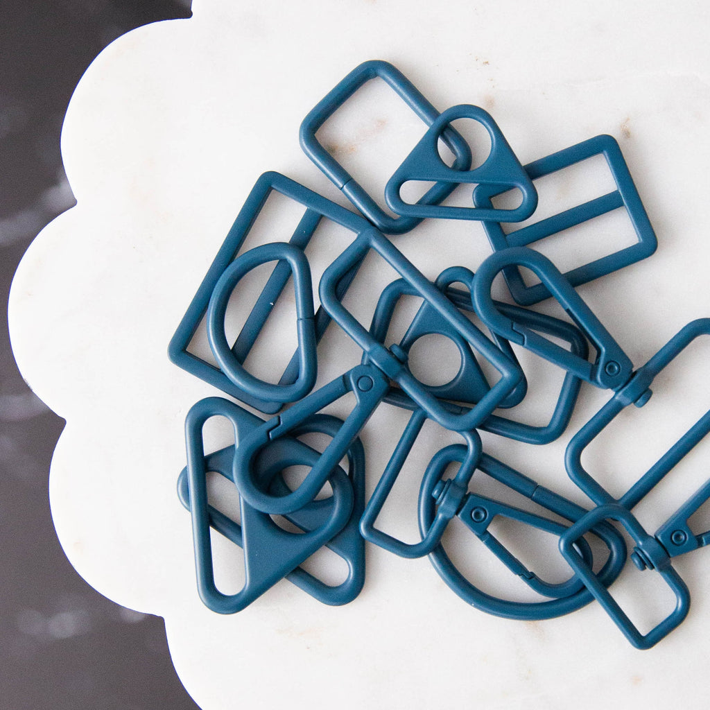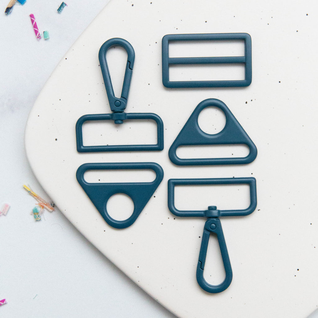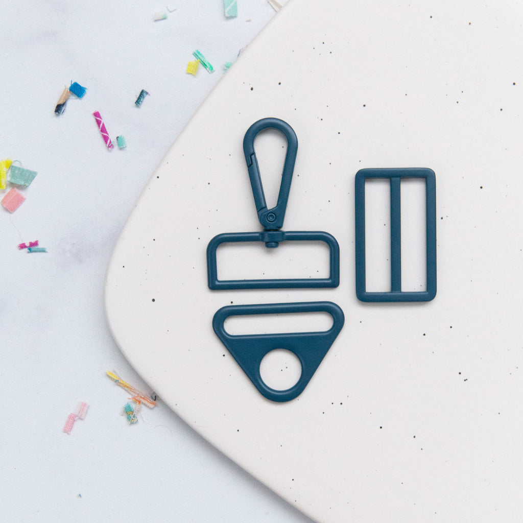 Sling/Crossbody Bag Hardware Kit contains: 1 Triangle Ring, 1 Swivel Hook and 1 Tri Glide Slider Buckle