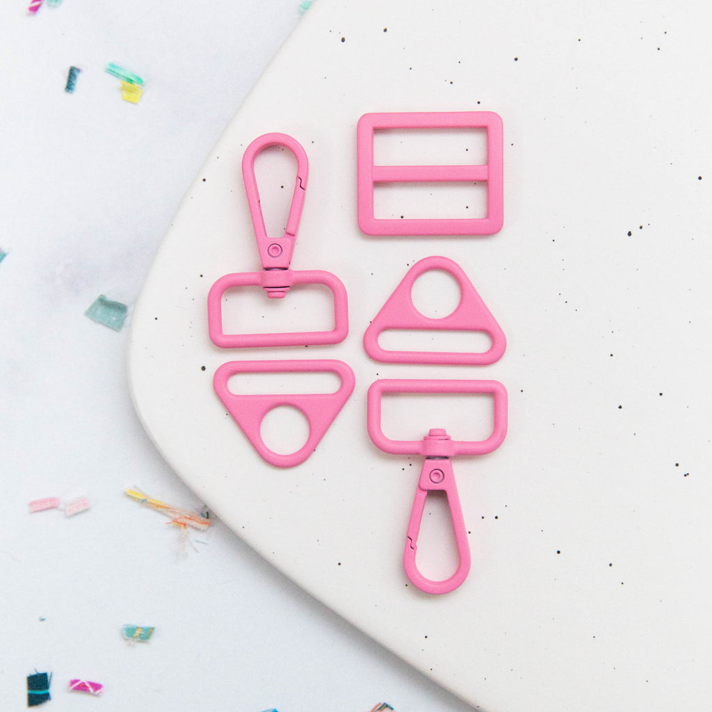 Sling/Crossbody Bag Hardware Kit contains: 1 Triangle Ring, 1 Swivel Hook and 1 Tri Glide Slider Buckle