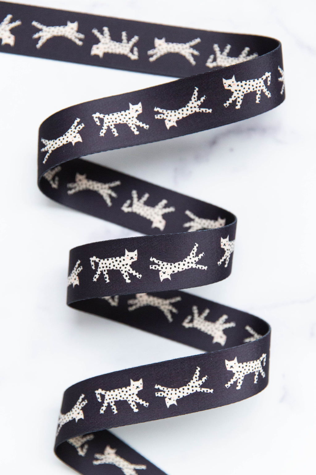 Webbing: Snow Leopards in Black - 1 1/2" wide