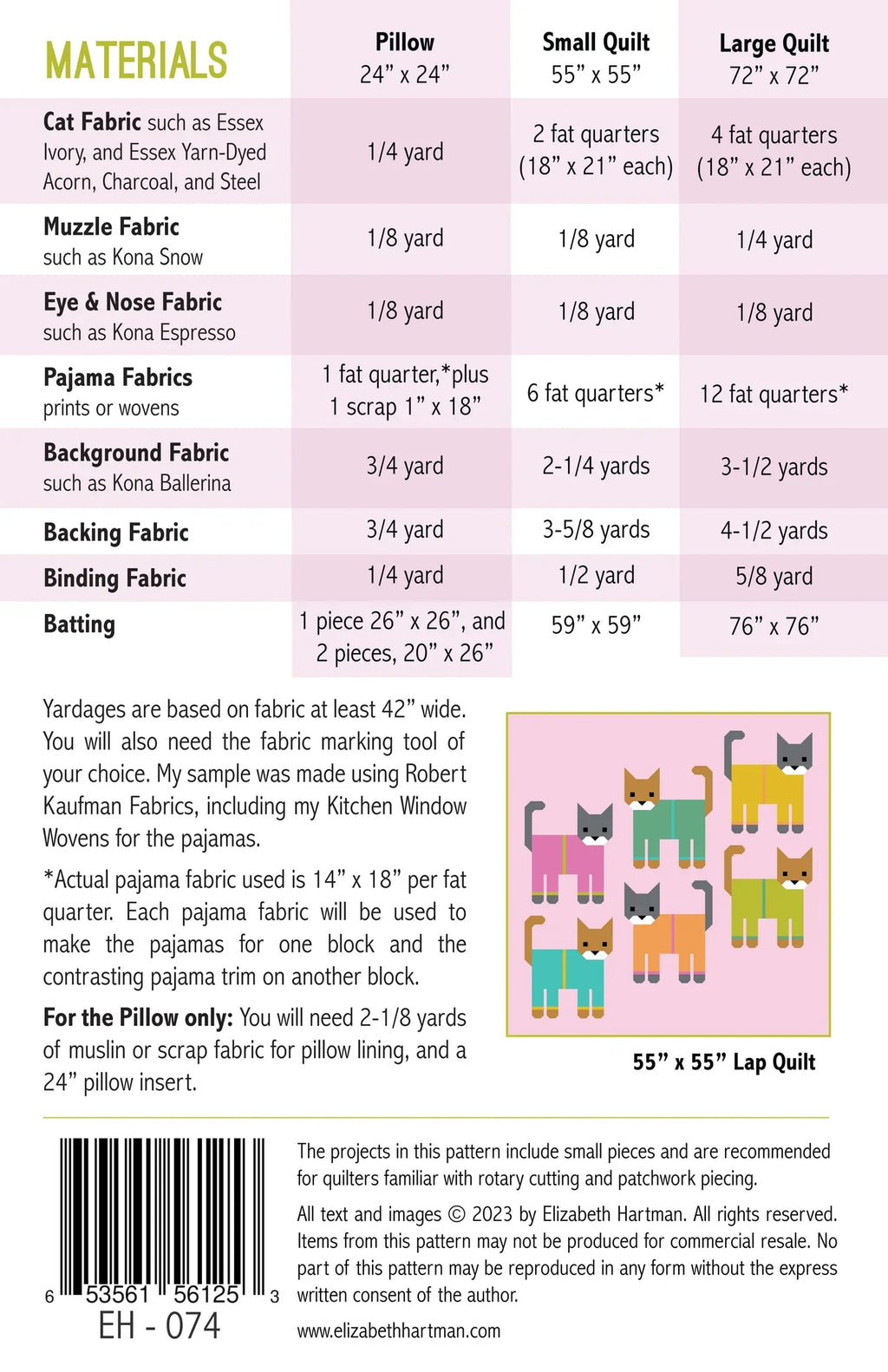 Make pajamas for these cozy cats using your favorite fat quarters. Everything is pieced using conventional patchwork techniques. No templates or paper piecing!