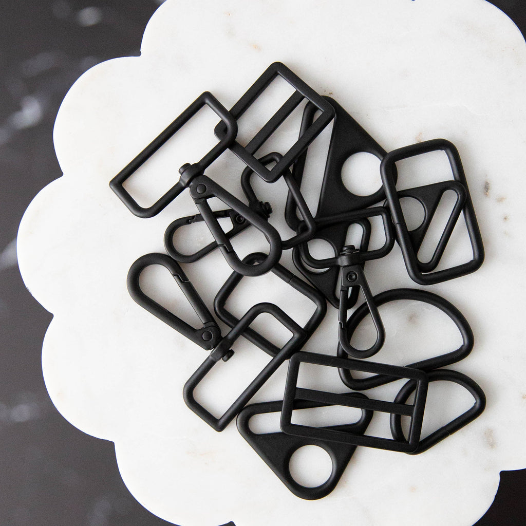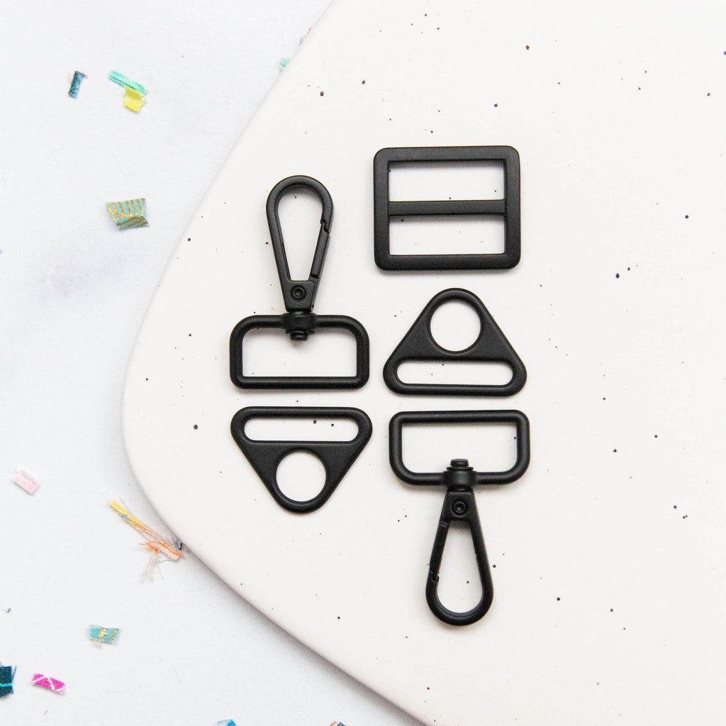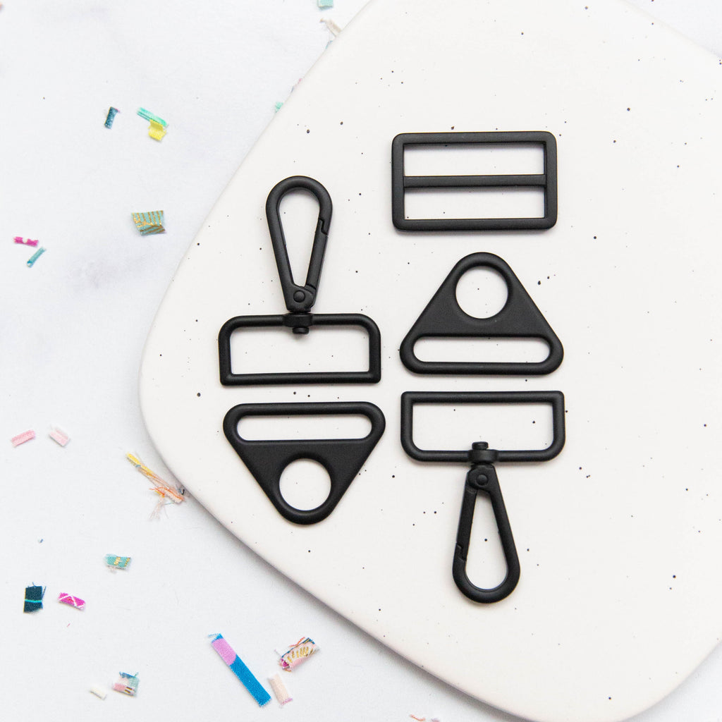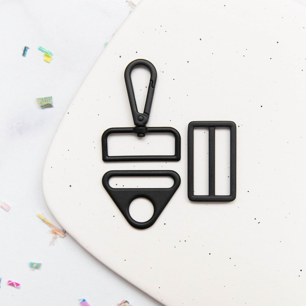 Sling/Crossbody Bag Hardware Kit contains: 1 Triangle Ring, 1 Swivel Hook and 1 Tri Glide Slider Buckle