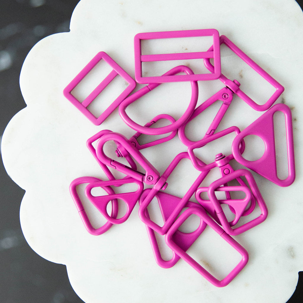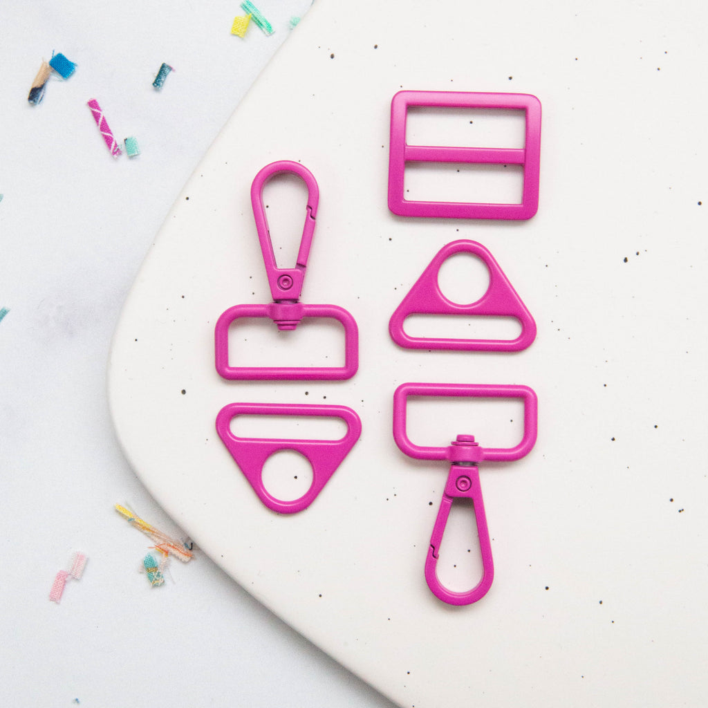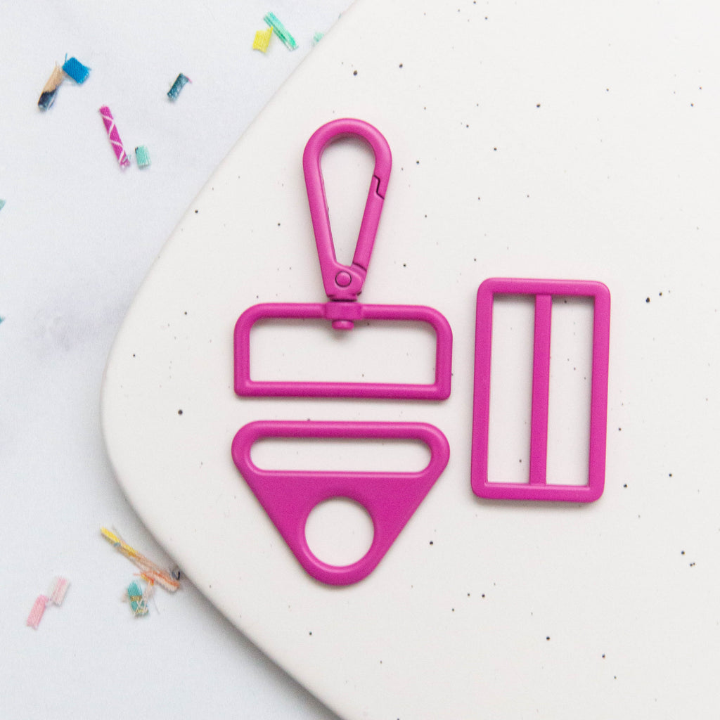 Sling/Crossbody Bag Hardware Kit contains: 1 Triangle Ring, 1 Swivel Hook and 1 Tri Glide Slider Buckle
